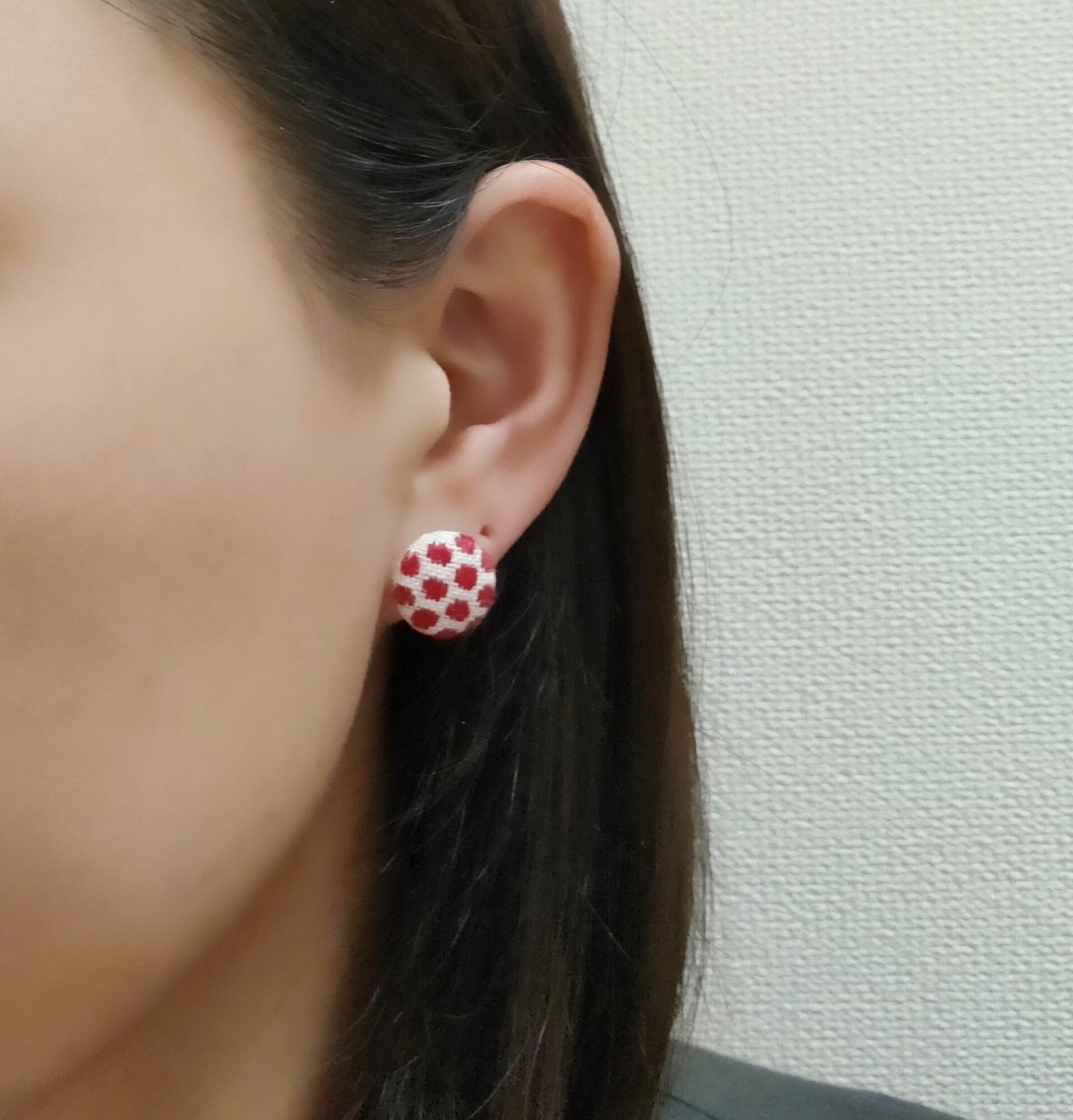 くるみボタンピアス(ドット柄)